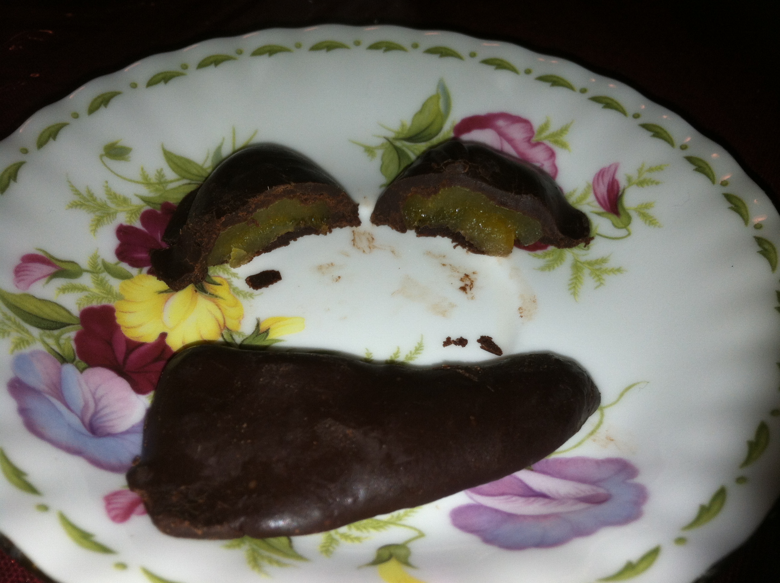 6. Place 4-5 pieces of dry fruit into the chocolate mix, turning each one to be well coated.