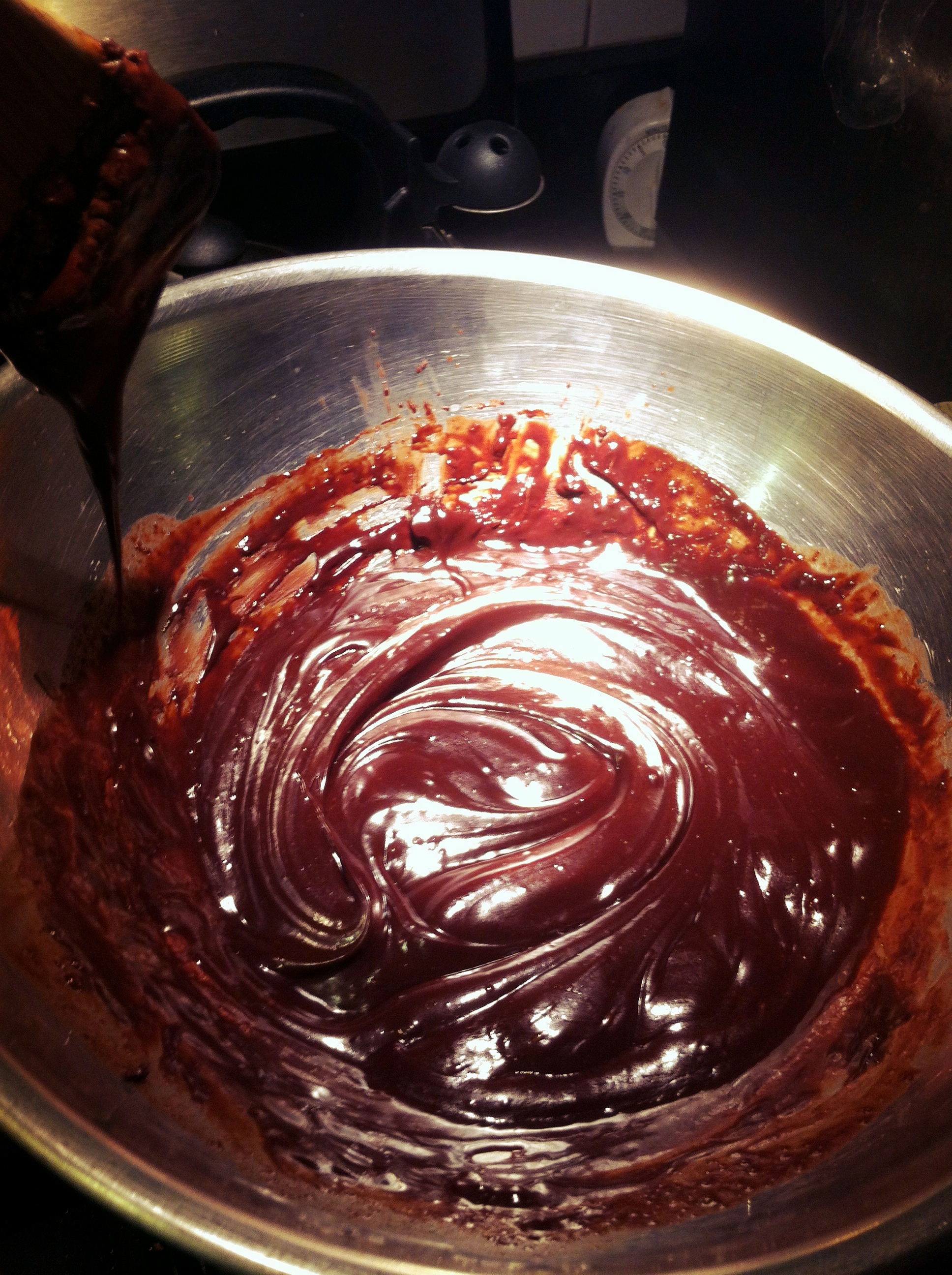 2. Reduce heat to low/med and place a metal bowl (has to be metal!) over the pot so it is resting on top of the pot and not in it