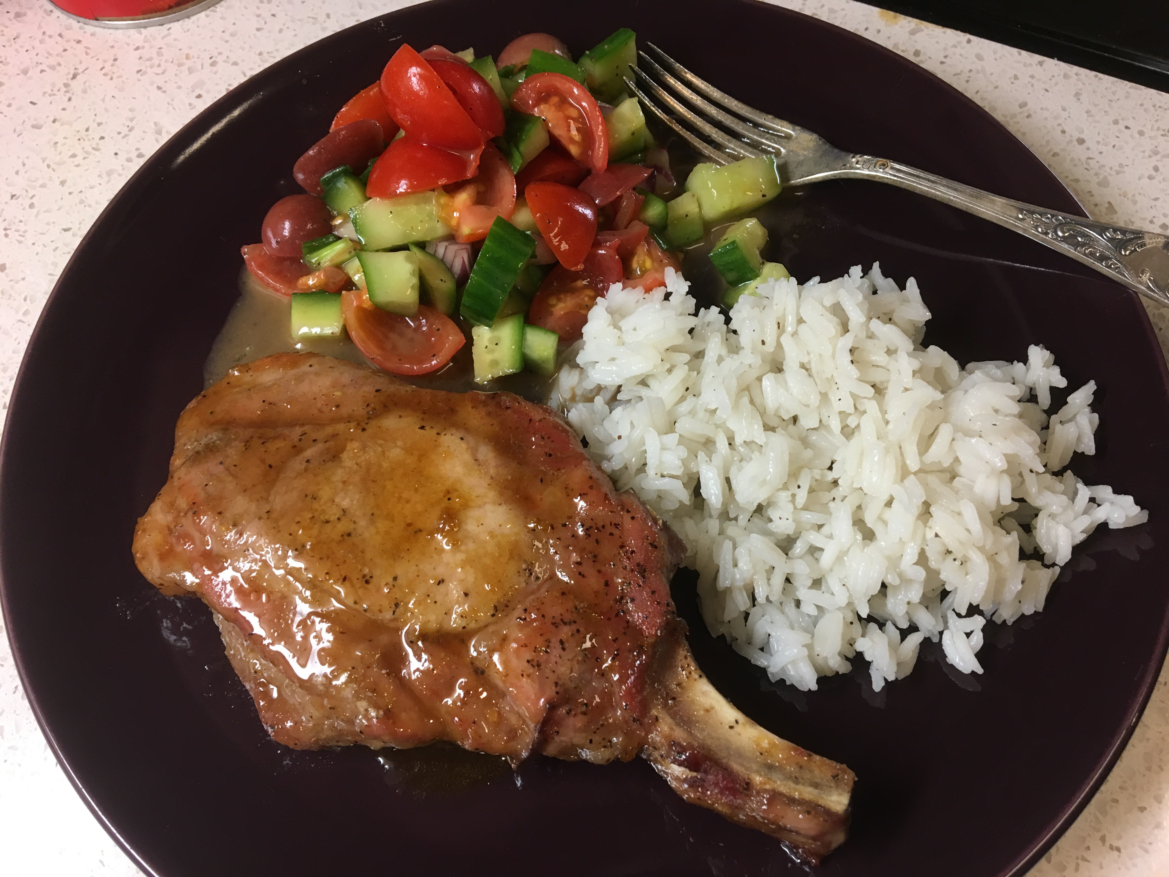 5. Brush both sides of each pork chop with glaze and bake for a total of 30 minutes or until meat thermometer reads 150 F. Remove pork chops from oven every 10 minutes and reapply glaze
